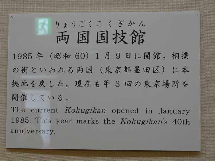 1985年(昭和60) 1月9日に開館。相撲 の街といわれる両国(東京都墨田区)に本 拠地を戻した。