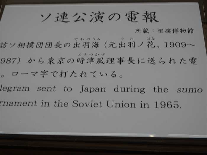 訪ソ相撲団団長の山羽海(元出羽ノ花、1909 ~1987 )から東京の時津風理事長に送られた電文。