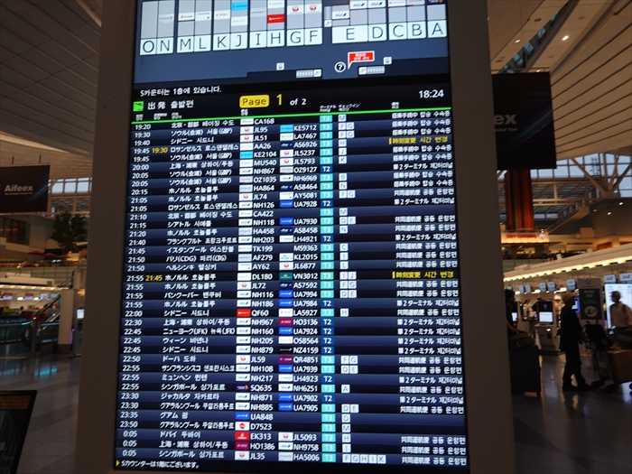 電光掲示板に表示された、飛行機を確認。