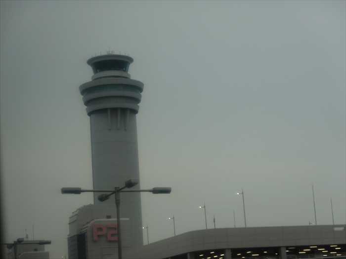 東京国際空港管制塔を見上げる。