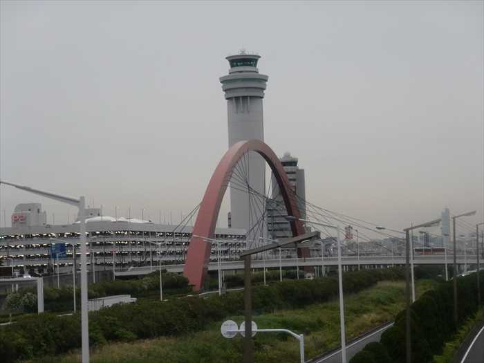 羽田空港第2ターミナル前を通過し、 羽田スカイアーチ 」、 東京国際空港管制塔