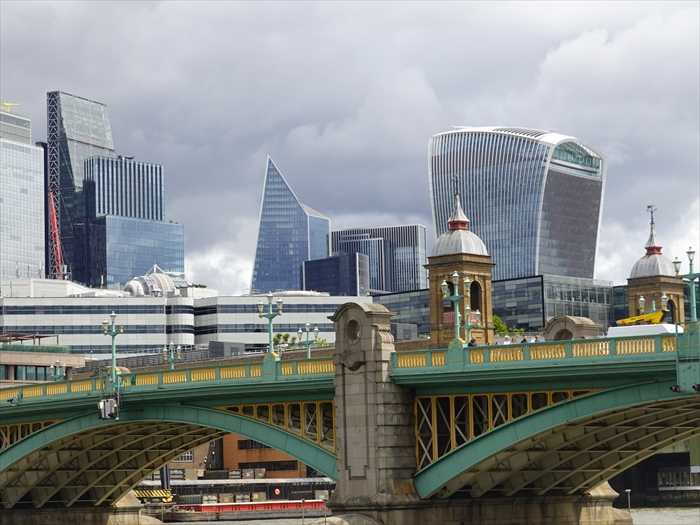 ロンドンの金融街「シティ・オブ・ロンドン」の高層ビル群