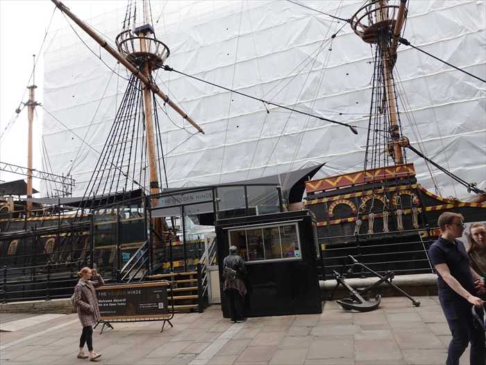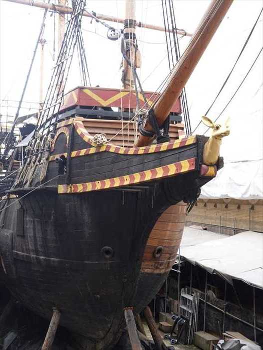 The Golden Hinde(ゴールデン・ハインド号) の 船首部分。
