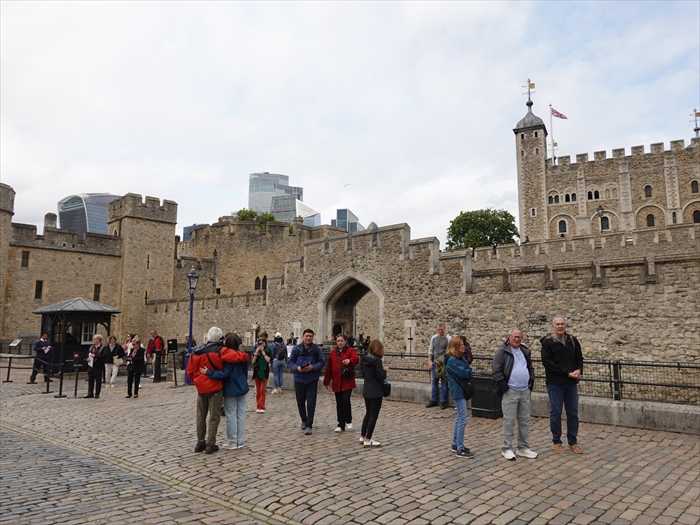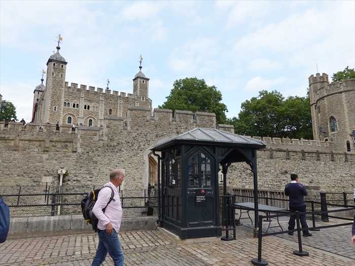ロンドン塔(Tower of London)の外側の堀(現在は芝生)を右に見ながら進むと、その向こうに