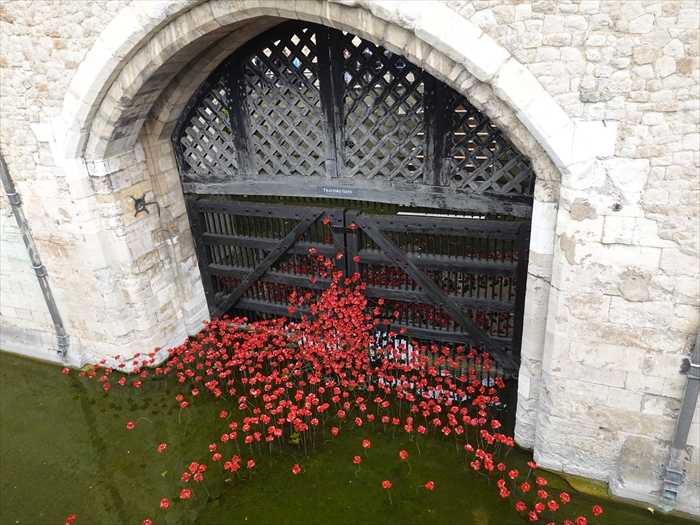Traitors’ Gate(反逆者の門) 前に設置された陶器製のポピー(ケシの花)インスタレーション