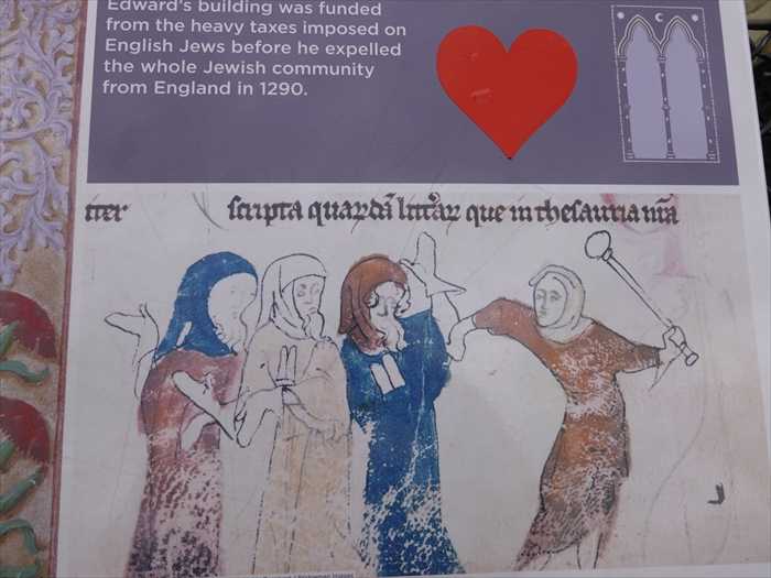 「Edward’s building was funded from the heavy taxes imposed on English Jews before he expelled the whole Jewish community from England in 1290.」
