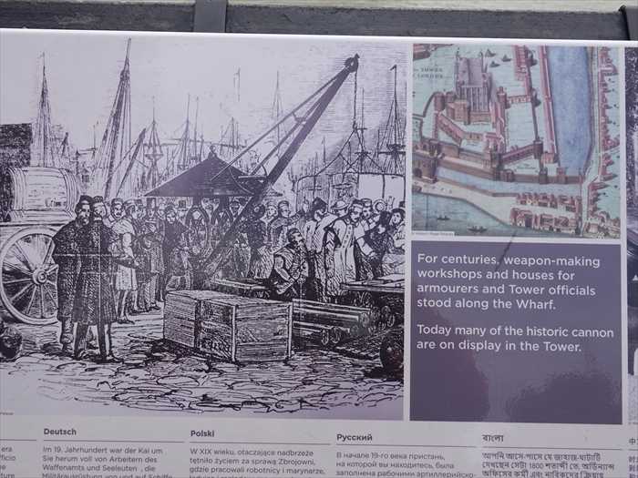 【何世紀にもわたり、テムズ川沿いの埠頭には武器製造工房や、甲冑師・ロンドン塔の役人たちの