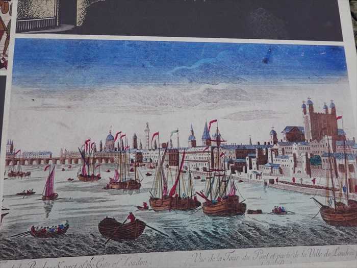 ・背景にはテムズ川沿いのロンドン市街や橋(おそらくロンドン橋)が広がっています。