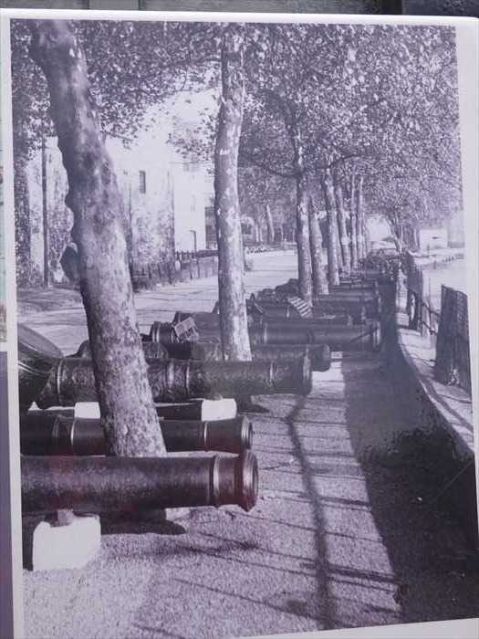 テムズ川沿い「Wharf(埠頭)」に並べられた大砲群を撮影 した 過去の記録写真。