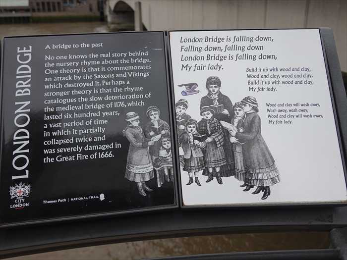Perhaps a stronger theory is that the rhyme catalogues the slow deterioration of the medieval bridge of 1176, which lasted six hundred years, a vast period of time in which it partially collapsed twice and was severely damaged in the Great Fire of 1666.」