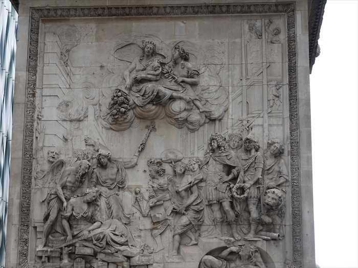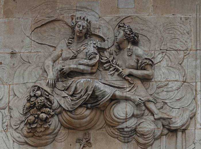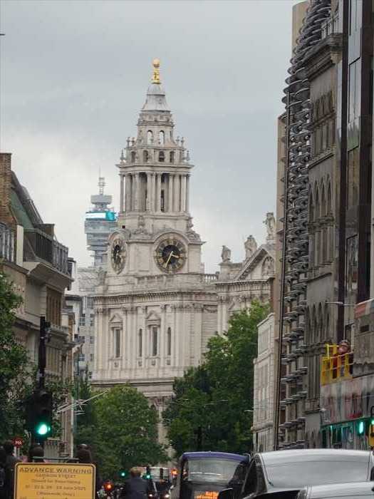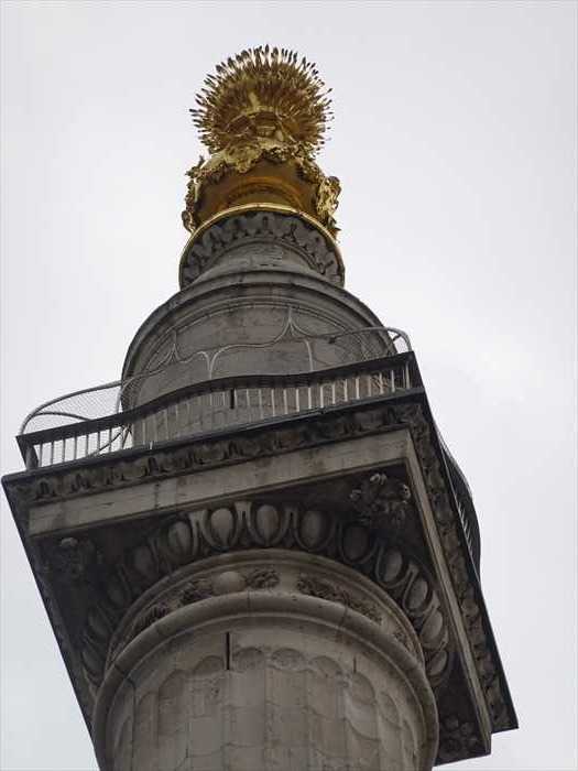 The Monument, a freestanding fluted Doric column topped by a flaming copper urn, is 61m/202ft in height, being equal to the distance westward from the site of the bakery in Pudding Lane where the fire broke out. Its central shaft originally housed lenses for a zenith telescope and its balcony, reached by an internal spiral staircase of 311 steps, affords panoramic views of the City. The allegorical sculpture on the pedestal above was executed by Caius Gabriel Cibber and shows Charles II coming to assist the slumped figure of the City of London.