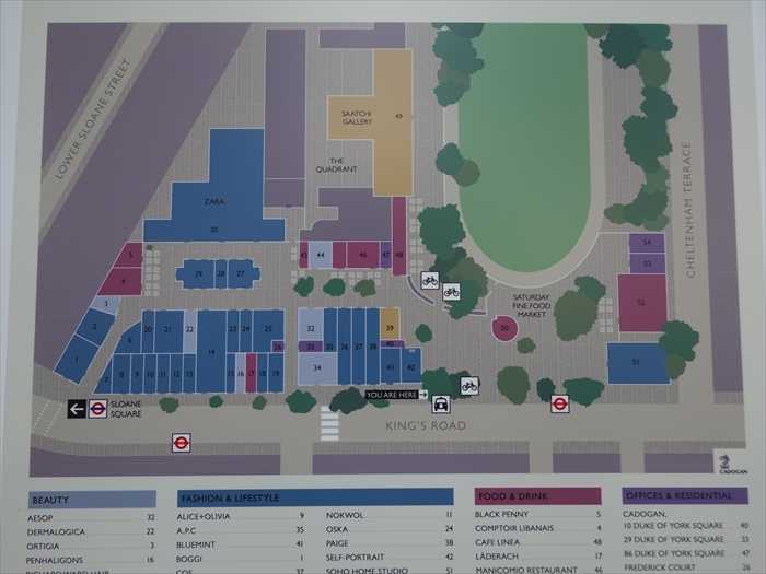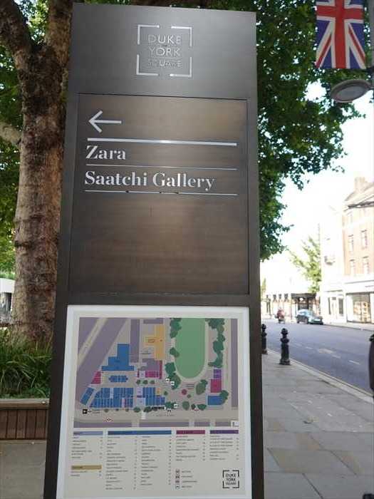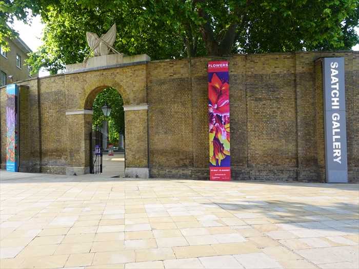 ・右:「SAATCHI GALLERY」 と書かれた縦長の案内板。