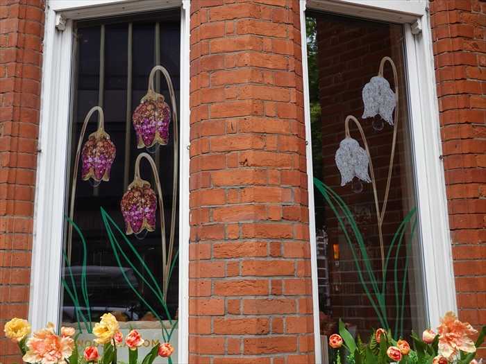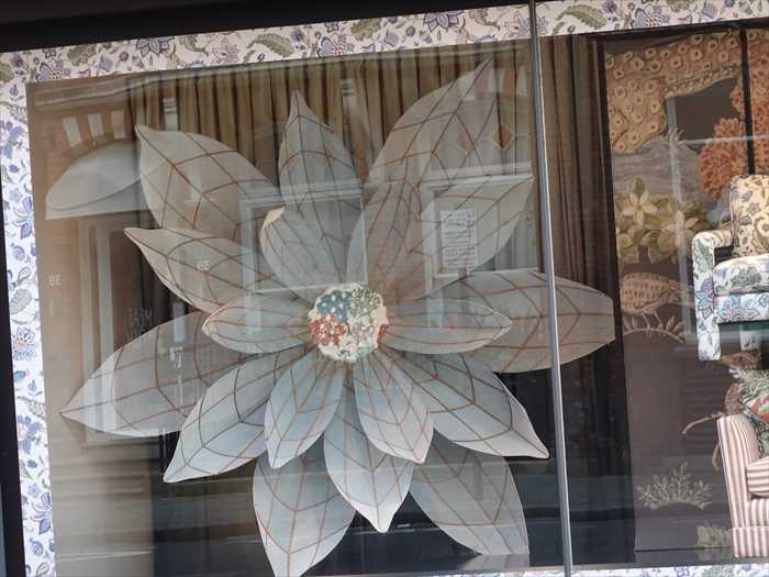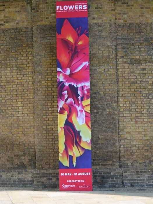 ・左・中央:「FLOWERS」展のバナー(現代美術展覧会の告知)。