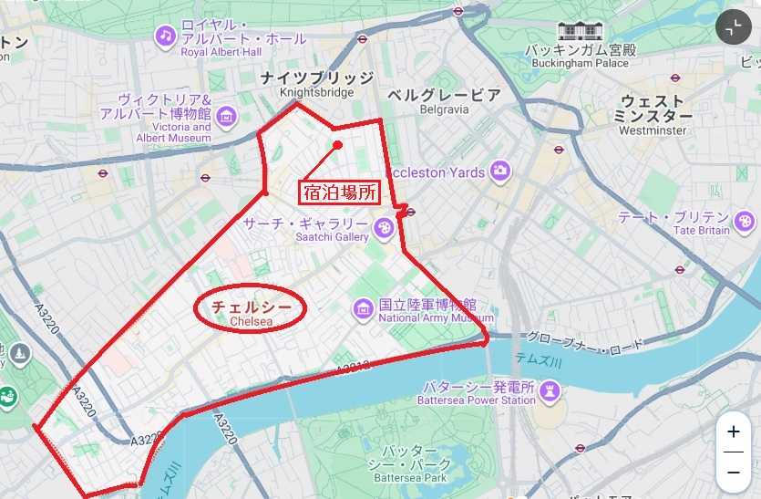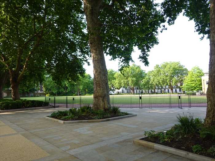 Saatchi Gallery(サーチ・ギャラリー)や Duke of York Square に隣接する緑地(芝生広場)。 この広大な芝生エリアは、かつてDuke of York’s Headquarters(デューク・オブ・ヨーク兵舎) のパレード・グラウンドとして使われていた場所 と。 長い歴史を持つロンドンプラタナスなどが並び、都市の中に豊かな緑陰を形成。