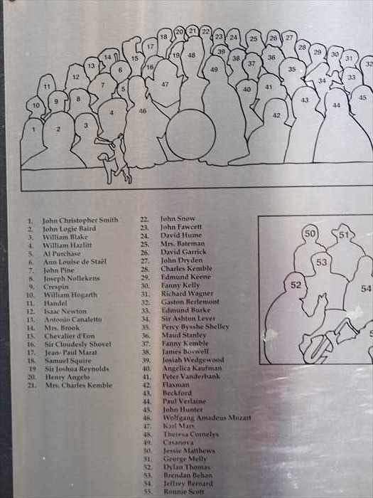 モザイク全体にはソーホーに関わりのある歴史的人物が細かく描かれていて、この部分には特に