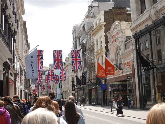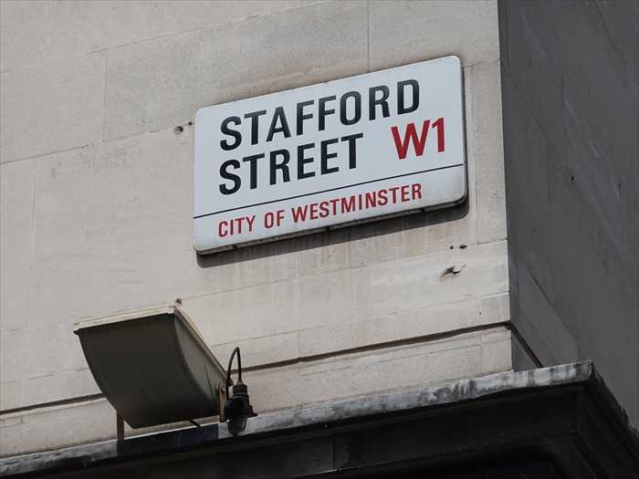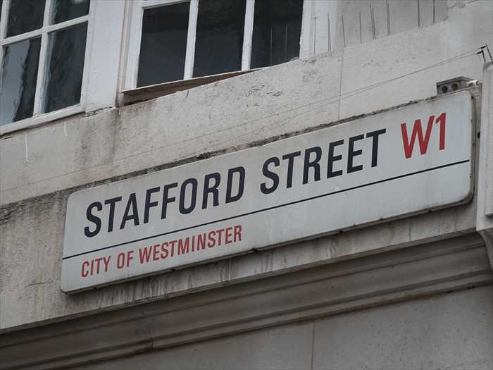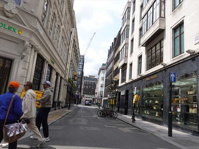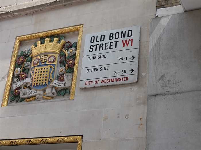 ・OTHER SIDE(向かい側) → 25〜50番地に番地が割り振られていた。 ・上にある装飾的な紋章は、City of Westminster(ウェストミンスター市)の紋章。 ・金色の王冠 ・十字とバラの意匠 ・モットー「Custodi Civitatem Domine(主よ、この都市をお守りください)」 Old Bond Streetの特徴 ・世界的な高級ブランド街として有名。 ・Cartier(カルティエ)、Tiffany & Co.(ティファニー)、Gucci(グッチ)などが軒を連ねる。