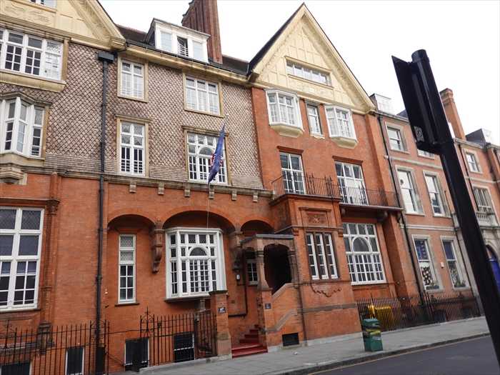 ・奥に見える白い建物は スコットランド教会(St Columba's Church of Scotland, London).