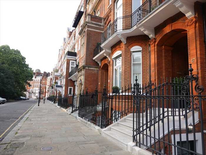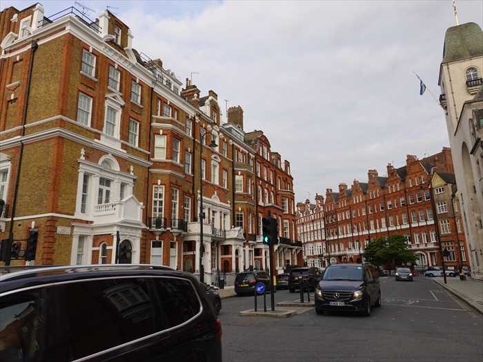典型的な ロンドンの高級住宅街(メリルボーン/ナイツブリッジ周辺) の景観 を示していた。