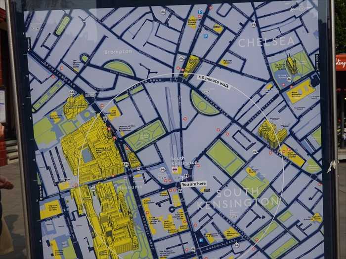 地図の中央に「South Kensington」と駅名があり、さらに 「You are here(現在地)」の