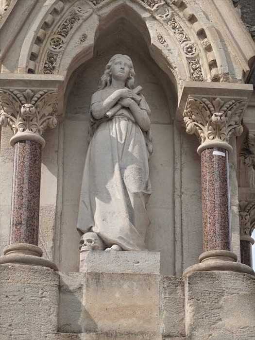 十字架を抱き、 悔悛の象徴として 頭蓋骨の上に立つマグダラのマリア 」が表現されていた。