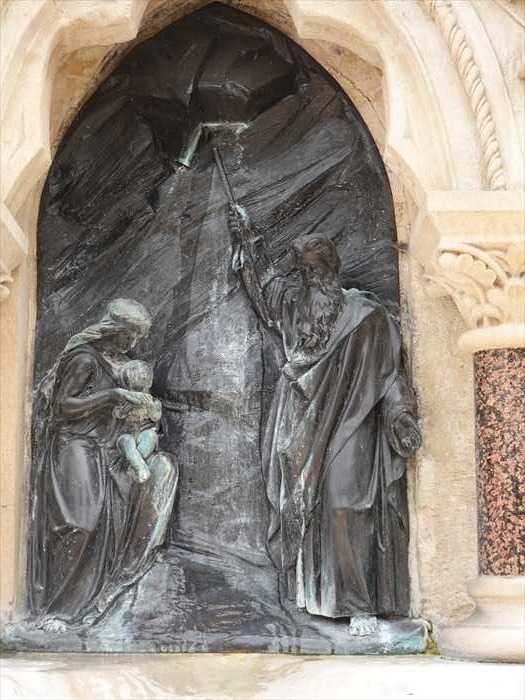 聖母マリア(the Virgin Mary)に抱かれ幼子イエス・キリスト(Christ)の姿 がブロンズで