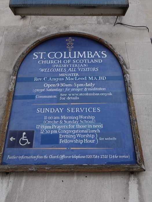 St. Columba’s Church of Scotland(セント・コロンバ・スコットランド教会) の案内板