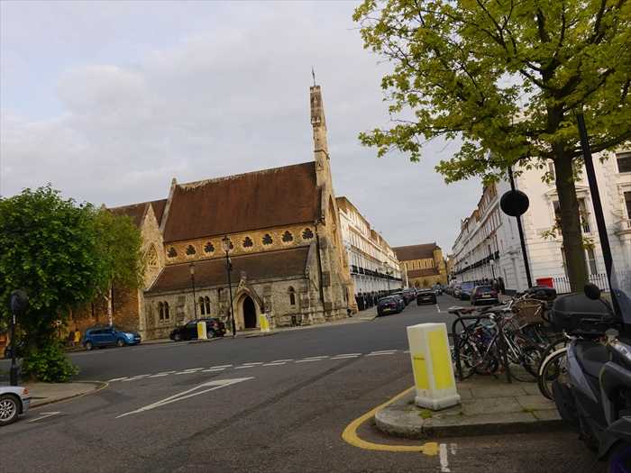ロンドンの St Columba’s Church of Scotland(セント・コロンバ教会) のすぐ近くの通りの風景。