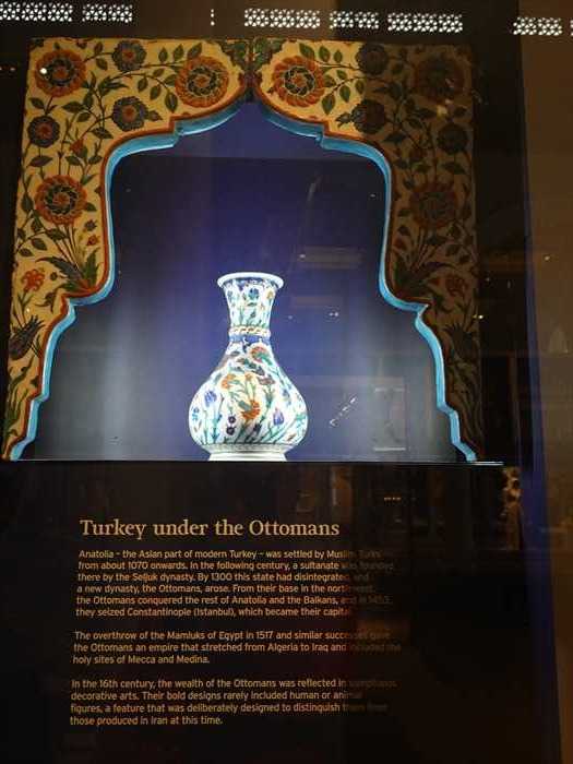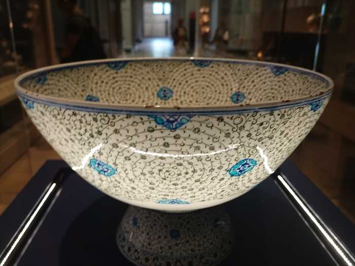 In the 16th century, the wealth of the Ottomans was reflected in sumptuous decorative arts. Their bold designs rarely included human or animal figures, a feature that was deliberately designed to distinguish them from those produced in Iran at this time.」