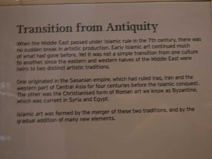 When the Middle East passed under Islamic rule in the 7th century, there was no sudden break in artistic production. Early Islamic art continued much of what hadgone before. Yet it was not a simple transition from one culture to another, since the eastern and western halves of the Middle East were heirs to two distinct artistic traditions.