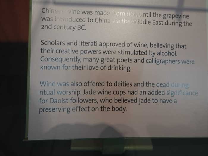 Wine was also offered to deities and the dead during ritual worship. Jade wine cups had an added significance for Daoist followers, who believed jade to have a preserving effect on the body.」