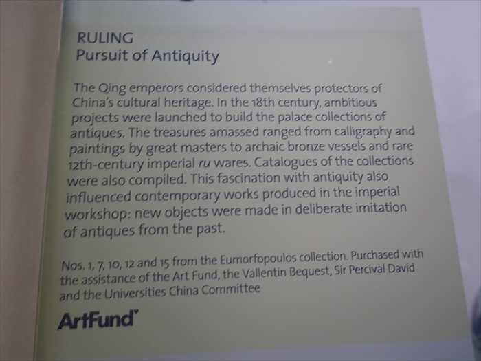 V&A(ヴィクトリア&アルバート博物館)中国ギャラリーにある展示の説明で、 テーマは 「RULING – Pursuit of Antiquity(統治 ― 古代の探求)」