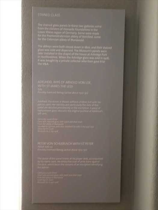 The ateliers were both broad-based in skills, and their detailed glass was cut and engraved. The Altenberg panels were later dismantled when the church was rebuilt in the 19th century. When the Altenberg glass was sold in 1819, it was bought by a private collector who then gave it to the V&A.