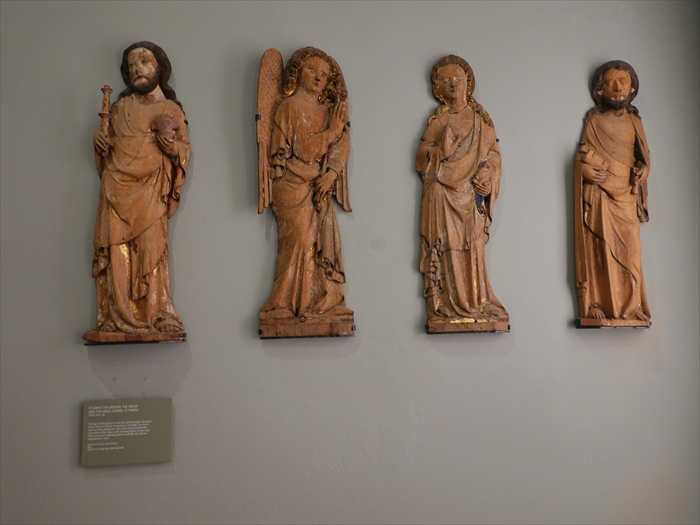 The figures belonged to a now-dismantled winged altarpiece in the church of St John in Lüneburg. Until 1856, the church had over forty altarpieces. This one probably showed the Coronation of the Virgin, with standing figures to each side. Their robes were originally gilded to emulate the richness of goldsmiths’ work.