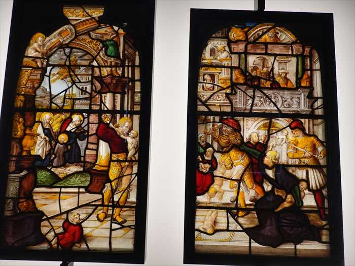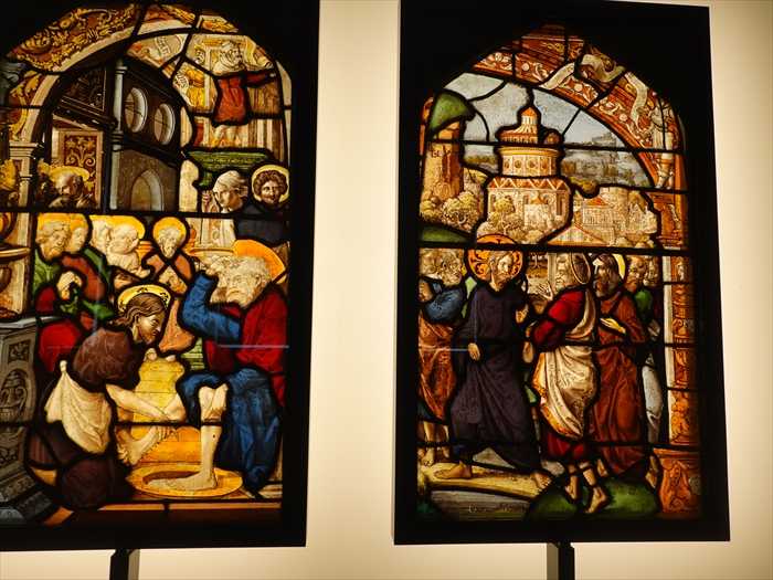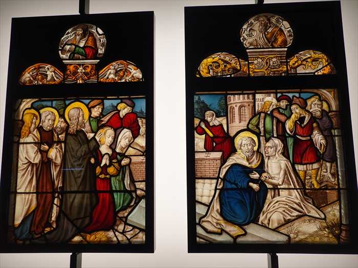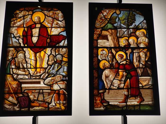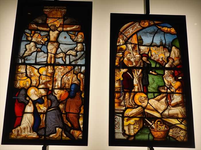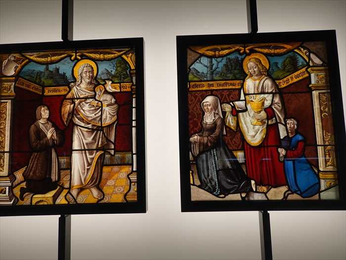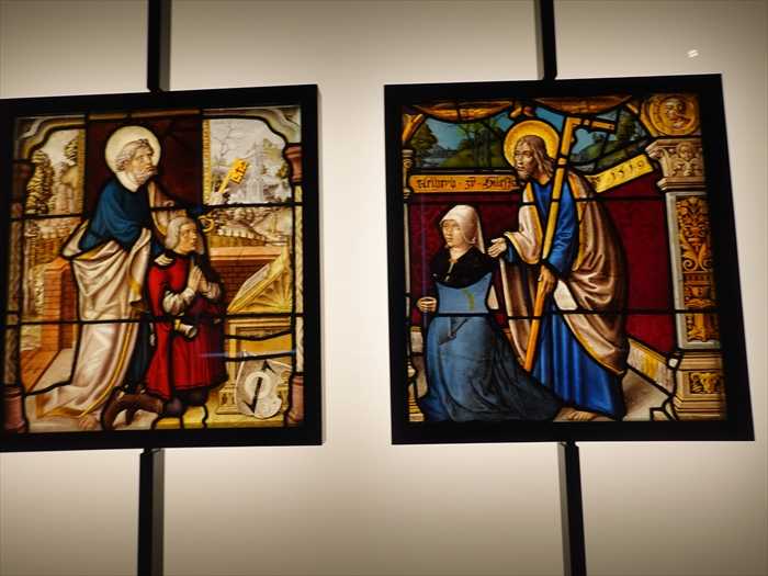 The stained glass panels in these two galleries come from the churches of Germany, Switzerland or the Upper Rhine region of Cologne. Most were made on the Premonstratensian Abbey of Steinfeld, some for the Cistercian abbey of Altenberg.