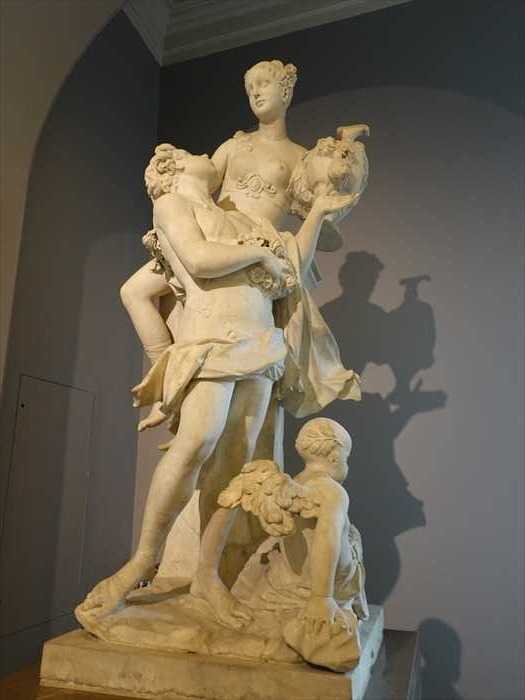 Flora was the Roman goddess of flowers and the wife of Zephyr, the west wind of springtime. This sculpture and the nearby Apollo Flaying Marsyas belonged to a series that Corradini made for Augustus II, King of Poland and Elector of Saxony, for his gardens in Dresden, now Germany. An important patron of the arts, Augustus II collected and commissioned works from artists across Europe.