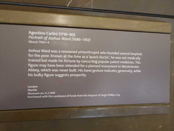 Joshua Ward was a renowned philanthropist who founded several hospitals for the poor. Known at the time as a ‘quack doctor’, he was not medically trained but made his fortune by concocting popular patent medicines. This figure may have been intended for a planned monument in Westminster Abbey, which was never built. His hand gesture indicates generosity, while his bulky figure suggests prosperity.