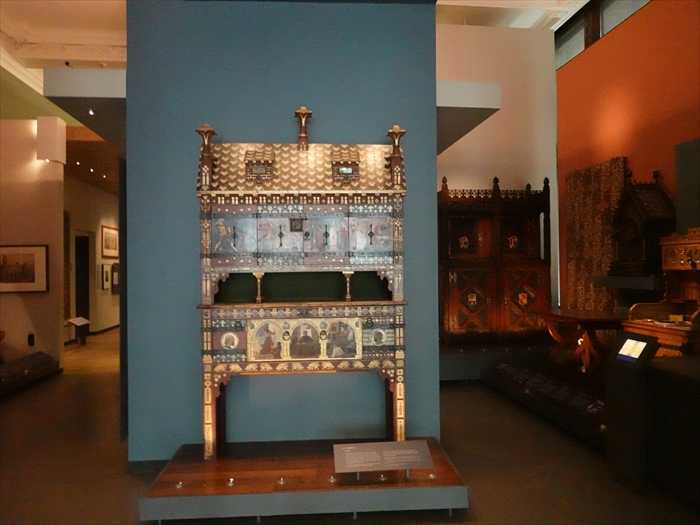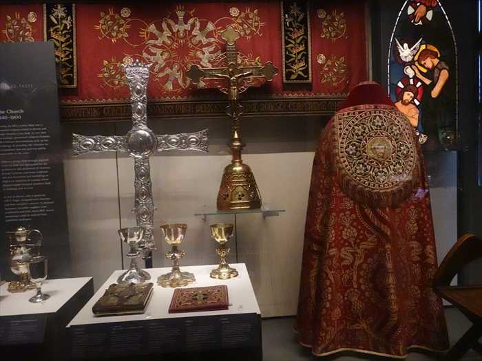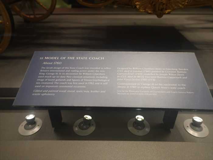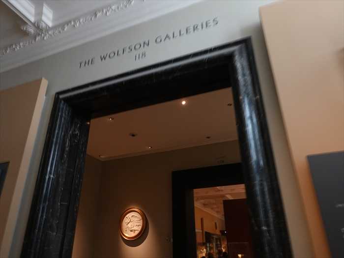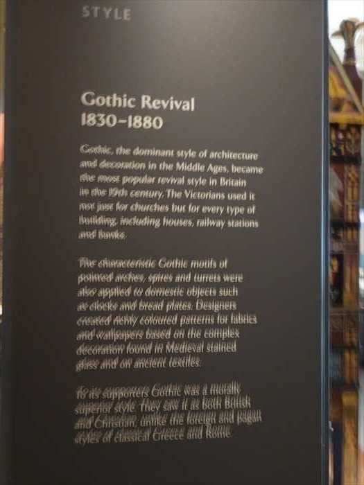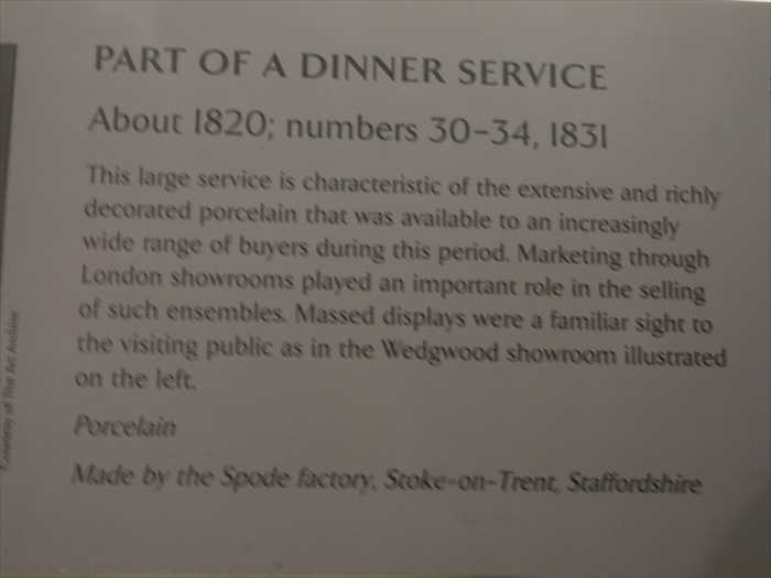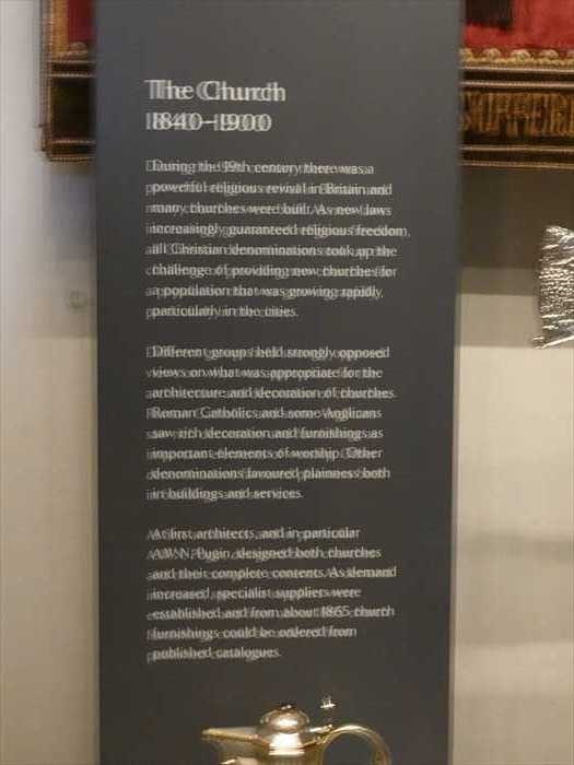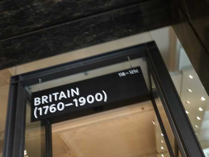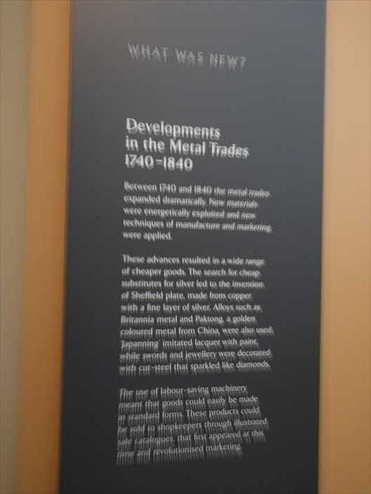 ・入り口横のパネルには「Developments in the Metal Trades 1740–1840(1740〜1840年の 金属産業の発展)」などの展示解説が掲示されており、産業革命期の英国を象徴する工芸品 (シェフィールド・プレート、カット・スティール、ブリタニア・メタルなど)が 紹介されていた。