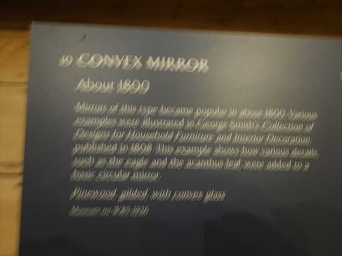 Mirror of this type became popular in about 1790. Various examples were illustrated in George Smith's Collection of Designs for Household Furniture and Interior Decoration, published in 1808. This example shows how various details such as the eagle and the acanthus leaf were added to a basic circular mirror.