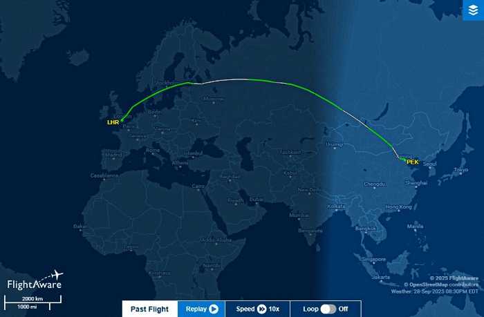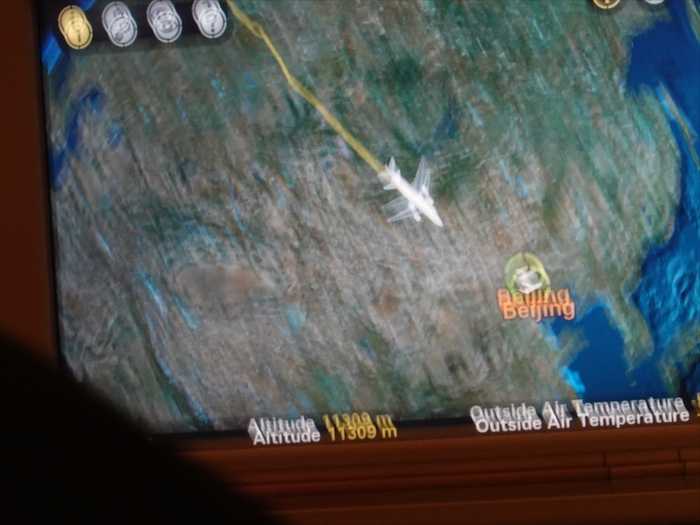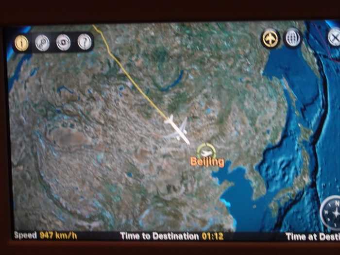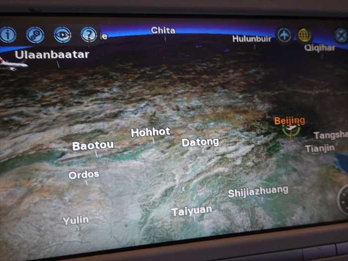 離陸後9時間、北京首都国際空港(BCIA)に向けて。