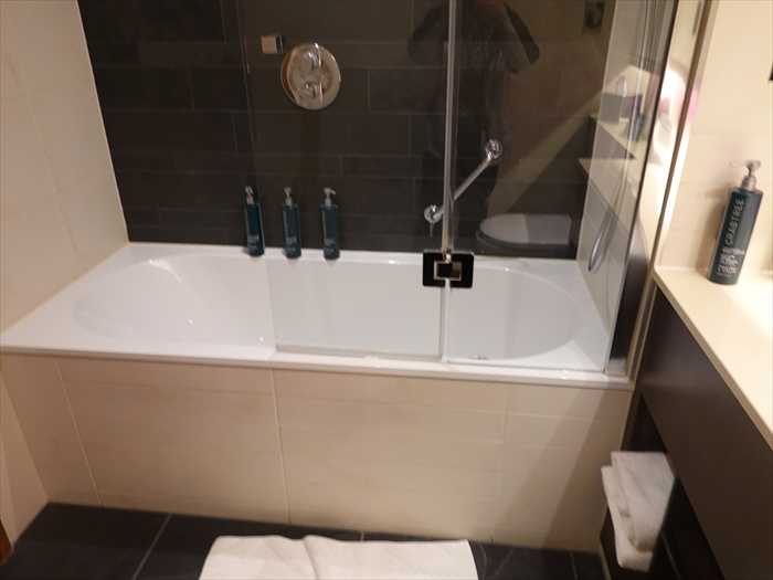 ・英国のホテルではシャワーブースのみの場合も多い中、ヒルトンT5は全室バスタブ付き