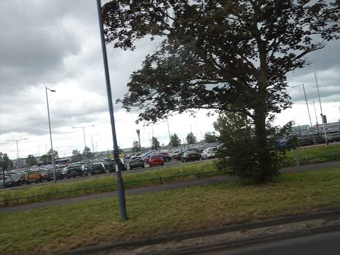Northern Perimeter Rd W沿いの巨大な駐車場。