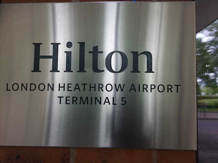 銘板「 Hilton London Heathrow Airport Terminal 5 」。