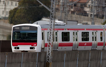 気がつけば1ヶ月ほどもブログの更新をしてなかったのか~。お久しぶりです~~~~。<(_ _)>学校に入ると楽になるよ、子供が手を離れるから~みたいなコトを聞いていたのですが、いやいやどうして、これって人によるよな~~と思いっきり実感中の今日この頃。逆にものすごく手間かかってる気がするのは絶対気のせいでは無いハズ!!「かずぴークンは、集団で動かすのが本当に難しい子」これは、前保育園の園長先生から頂いていた奴に対する評価なのですが(爆)、現担任の先生も、ようやく言葉の真意が体験として「解ってきた」ようです(汗)。そうそう、かずぴーって昔はやった動物占いでいうと「青の狼」なんですね。でね、その性格が笑っちゃうんですけど、一言でいうと「変わり者」なんですって(笑)。しかも、そうだ、、確かAB型も「不思議クン」系だったよね(大爆笑)。なんか当たってるかも。ちょっと2重人格っぽい所が(汗)。で、ものすごく寂しがり屋で甘ったれのトコもあったりするから、周りは混乱するんだろうな~。てな、、前説はさておき(笑)、京葉線を走行してる331系が見れたんですよ~!↑こういう奴おおおお。まさか、見れるとはッ、って感じです~。試作車の故障でしばらく運休してたのが、去年の12月に復活してたらしく、もしかしたら、、、、このダイヤで走ってるんじゃないのかい、、、というマニアの間での噂を信じ(笑)、通過予測時刻を割り出し、現地に張っていると、、、おおおおお、すごい。きたきた。かずぴー、狂喜乱舞(笑)——こんな感じで書くと、私が「テツ」と思われがちですが(笑)、新型オタのかずぴーが、ずっと気にしていた車輌なんです。京葉線に1編成だけ試作車輌として走行しているみたいで、是非ライブで見たいぞということで、なんか唐突に日曜日に繰り出してきました(笑)。2010年で試験走行を終了するようで、そっから先は通常営業走行をするかどうかは、未定なんだとか? 違うのかな。「どうして京葉線はE231系の新型じゃなくて、331なの?」——う~ん。。それを私に聞いてもわからんぞ。。しかし、、、確かにそういわれてみればそうかもねぇ。。ちょっと、、調べてみようかなあ。。(こうやって、無駄な知識がついていく私なのであった)。。。(笑)