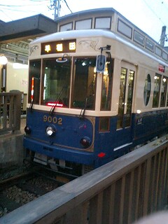 都電荒川線の謎解き宝探しゲーム、かずぴーも参加してみました。ホントに軽い気持ちで、「リハビリの帰りにせっかく来たんだから、まあ、やってみようか?」と声をかけてしまったのが運の尽き。荒川車庫前で下車して、その台紙を見て、、アラビックリ。。。↑問題の一部。ねね、結構難しいでしょ。地元の人には簡単なのかもしれないけど。うそん。何コレ、、難しくない?? 地元住民じゃないと、、、。。。ええええ、うそ、舎人ライナーも範囲内????駅構内においてあるスタンプとかじゃないんだ、ってか、、、駅名すら書いてないし(汗)。。。駅から近くの公共施設にいって、そのキーワードが書いてある宝箱を探すって事?しかも、、、雨降ってたんです。その日(絶望的)。ねね、、期間長そうだから、、また今度ということで。。。という私の悲痛な叫びは、、「面白そう!!! やろう、やろう。早くいこう。電車がきてる。さっそく乗ろう!!!」というかずぴーの大声にかき消されました(大泣)。むちゃくちゃはりきってるやん。——はっきりいって、、かなり、、、疲れました~。だって、ご飯食べないんだもん。時間がないっていって。リハの帰りだったので時間をMAX使えてないってこともあったのですが、ものすごハイペース(笑)。なんで、こんなに全力疾走しなきゃいかんの(ゼーハーゼーハー)。。。で、全てのキーワードをゲットした後、ようやくお許しがでて昼食を食べました。駅の構内でコンビニおにぎりですが(笑)。時間も3時を少し回った所。君はいいけどさあ、つきあってる私の身にもなってよ~。——まあ、、クイズをといて探すってのは、、、確かに面白かったけどね。ちょっと鉄腕ダッシュっぽくて(笑)。そんなアホなことをしゃべりつつ、参加賞をもらいに荒川車庫前に戻ろうとした時に、向こう来た電車は、なんと、ずっとかずぴーが乗りたがっていた新型の8800形。「やった~~~~~~~~~~~~~~~~!!!。早く乗ろう!!」お疲れもフッとんだ模様(笑)。↑これがその参加賞です。おお、なかなかシックでかっこいいかも。これはお子様限定景品? 「とえい うまい棒」サラミ味(笑)。非売品らしいです。うまい棒のキャラが運転士さん仕様になってたり、新型車輌、レトロ車輌などが描いてある。なんか、可愛い。--------------------------------------------夏休みに入って一発目のリハは、眼科でした。視力が上がっているので、もし、維持しているようなら夏休みの訓練は中止してもいいよということだったので、どうだろう、、とドキドキの診察でした。「おめでとう。先生からの誕生日プレゼント。夏休みは訓練中止していいよ!」おおおお、すごく素敵なプレゼント♪視力は眼鏡かけて右1.5、左1.2。おお、あがっとる♪右は裸眼でも1.5あるみたいですけどね(笑)。とりあえずは、良かったね。