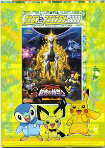 実は、先週ポケモンを見に行ってみました(笑)。かずぴーは、そんなに興味ないんじゃないかと思っていたのですが、そうか、いろんな種類がいるポケモンは結構ツボみたいで、学童にあるカタログ(?)をちょこちょこ見ていたよう。で、また名前とか結構知ってるのよね~。笑っちゃうけど。とにかく電車と同じで「新型」(?)がお好み。ということで、今さらなんですが、今年の夏一番新しい「アルセウス超克の時空へ」を見に行ってみました。まあ、そんなに興味なくても、友人との付き合いがムチャクチャへたっぴそうな(爆)かずぴーにとって、少しでも同年代と共通の話題ができれば、ま、それはそれでオッケイかな~と。かなり個性的な面もあるかずぴーですが、反面とっても寂しがり屋で、人と足並みを揃えたくなっちゃう一って所もあるんですよね~。だから、クラスの子たちがポケモンの話をしていると一応ネタとして押さえておきたいって衝動もあるんでしょう、きっと。で、見た後から解ったことなのですが、これって3部作の最終章で続き物だったんですね~、いや~、先に予習しておけば良かった(汗)。。「?」って所が多かったんで、DVD借りてきてみちゃいましたよ~、ダイヤモンド・パール第一部。それが、思いのほか面白かったです~。ギラティナと氷空の花束シェイミ(第二部)は見たことあったけど、あ~、そーなんだ、パルキアだのディアルガってここで出てきてたのかあ~~と。ダークライ、カッコイイじゃないか! みたいな感じで(笑)。う~ん、侮れないぞ。ポケモン。こいつはなかなか面白い!!思わず真剣に見ていた私に、かずぴーがニヤニヤしながら、「だから、お母さんにはポケモンを見せたくなかったのよ。絶対ハマると思った。来年もポケモンラリー、一緒に行ってあげるからね★」だって。なんかすっごく悔しいのは何故?(笑)。--------おまけ--------ポケモンって数えるときって、どうやって数えればいいんだって話をしてたんです。何かの時に。一匹、二匹かな、で、大きいのは頭?という具合に。かず「アルセウスは、一頭しかいないのかな」私「いやいやいやいや、、、神様ポケモンに『匹』『頭』はイカンと思う」かず「じゃあ何て数えるの?」私「神様でしょ~、だったらご神体とかの単位を使うんだろうか? 一体、二体とか」かず「そうだ、そうだよ! 『神と呼ばれし4体のポケモン』って書いてあった」私「いやいや、日本語って数え方の単位がいろいろあるから面白いよね」 意外な所で課外授業。とにかくいろんな経験はさせとくもんです(笑)。こいうことってしっかり覚えてるしね。