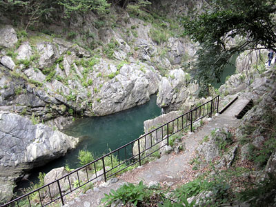 ゴールデンウィークは定額給付金で温泉にいったりしましたが(笑)、かずぴーが、どーしても電車の旅はしたいという強い希望により、小田原-大雄山間を走っている大雄山線に乗りに行ってきました。お父さんは、バイクでツーリングに行っちゃったので、二人旅です(笑)。本当は朝イチから出かけたかったのですが、学校のPTA役員会議の都合上(今年、役員になってみました。高学年になると結構大変というちまたの噂を信じて、「広報部」とやらに立候補してみました)、お昼ご飯を食べてからの出立。う~ん。。。大雄山線は結構ダイヤが充実しているようだったけど、、その先のバス、、が大丈夫かしら??? 単に乗って帰ってくるというのも何だったので、大雄山線の名前の由来にもなってる「大雄山最乗寺」というところにお参りにいってみようかなと。曹洞宗の寺院ですね、ふむふむ関東三十六不動霊場第2番の札所でもあるみたい。大雄山線の大雄山駅、事前にネットで調べたところ結構大きな駅だったので、最乗寺というお寺さんも、鎌倉の鶴ヶ丘八幡宮みたいに町中にドンと構えてるイメージだったんです。私ったら。なので、ま、帰りのバスもさすがに7時くらいまではあるんだろう、と高をくくっていたんですよね~。で、かずぴーとワイワイいいながら、どこだどこだと見つけたバス停で、あ、これだ♪と乗り込んだんです。明治神宮行きのバスにのるような、あんな気楽さで。そしたら、5分ものってると思いっきり山の中の道に。。——うそ~ん。あ、そうか、、大雄山最乗寺、だよね、山の名前がついてたか、、そりゃ山の上にあるよね(汗)。気がつくと、、、かずぴーと二人で貸し切り状態。。。あ、もしかして、、大丈夫かな、、、と、ようやくもしかしたらギリギリ? とういうか、、帰ってこれるかね、これ。。ちょっと、まずいかも、、と思い運転士の方にたずねると、次の次が終バスだそう(怖)。聞いておいて良かった(安堵)。。「道了尊」という終点につくと、「20分が最終だからね、間違えないでね」と念をおされてしまいました(笑)。おおおおお、思った以上に良い景観。せせらぎの音は聞こえるし、、暑くもなく寒くもなく、何より人がいないのが良い感じよね。——ちょっと怖いけど(笑)。前日に雨が降ったのが幸いして、すごく緑が深いし、良い匂い♪この石畳の階段が、かずぴーにとっては結構難所だけど、ま、終バスまでに1時間弱あるから、なんとかなるか。お参りをしているのは、ハイキングコースを歩いた帰りなのかな、年配の方が多かったです。みなさん山歩きの格好をなさっていたので。いやいやお元気だわ。ほんとに。かずぴーが参拝していると、「偉いね、僕。きっと御利益があるよ」と褒められてしまいました(笑)。もう少し時間があったら、散策できたんだけどね~。-------------------後日談-------------------その帰り、、私、携帯電話を落としてしまったんです(爆)。。まずい、まずい、携帯にしかはいってないアドレスとか電話番号があるし、、不正に使われて、、莫大な請求きちゃったらどーしよーーー(大泣)。。家に帰ってから焦って回線を止めて貰って、翌日、落としたんじゃあないかと思う新宿駅に連絡してみると、、、「あ、まちがいありません。機種もストラップも一致してます。これですね」落とした箇所も確信はなかったし、場所も新宿駅なんていう雲をつかむような場所。出てこないだろうな~と半ば諦めていた感もあったので、嬉しかったで~す。——さっそく御利益がありました~。神様、ありがとうございます~~~~。