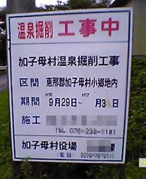 岐阜県の新しい温泉の一つ 加子母の温泉スタンドが、オープンしていると県のHPに書いてありました。岐阜県 HP http://www.pref.gifu.lg.jp/pref/HIMIKO/加子母温泉スタンドへジャンプ4月1日から温泉を販売しているようです。150リッター 100円 タンクは、持参で、 場所はやはり源泉のところなのかな・・・一度タンク持って買いに行こう。でも車が150リッター積んで、走ってこれるだろうか?以前200リッターFITに積んで、走ってきたらフットが、苦しそうだった。 掘削中のときの画像 スタンドもここ? わかりにくい場所です。何リッターにしようかな?