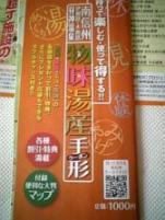 南信州 温泉手形 1000円で、クーポン購入すると 10施設の温泉無料手形が、ついてます。 1000円で、10湯 一箇所100円で、入れる計算 レストラン 物産 の特典が、ついていて お得 10施設⇒ 鶴巻荘 桂月 あさひ苑 恵山 月川 天心 清風荘 光風 ゆったり~な昼神 ひるがみの森 ひるがみ荘 吉弥 水晶山温泉 ひまわりの湯 砂払温泉 こまどりの湯 おきよめの湯 かぐらの湯 そば道場木曽路館 今日から 信州温泉スタンプも始まります 楽しみ~倍増です。