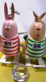 スーパーのゲームコーナーに うさびっちのクレーンが、 うほうほと 100円を入れて 山積みのうさびっちの中に クレーンを落とし うさびっちをコーンと 落とす。 と2個と 石が、落ちてきた~ 見ると ペア やった~ 100円で、2個 ということは 1個 50円 ぜんまい仕掛けのストラップ? 歩く歩く 5歩 歩く 面白い 今日は 父ちゃんが 体調悪く 頭がくらくら めまいがするので気持ち悪い と 会社休んで ずーと リビングで、ごろごろ