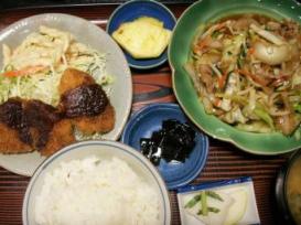 『葵』今日の日替わり定食 デジカメ dX1で、 ISOの感度200 オート 味噌カツ 野菜炒め 味噌汁 香の物 昆布 パインデザート付き ごはんが大盛りな、定食 お腹いっぱい で、お得今日は休日なのだが 朝から父ちゃんの体調が、悪く リビングで、頭痛が、する~と グタグタ とぐろを巻いている 昼に 鎮痛剤を飲んで ちょっと良くなったのか 晩ご飯に出かける 今日は、野菜いっぱい ココは最近健康考えた日替わりが、多いので お気に入り